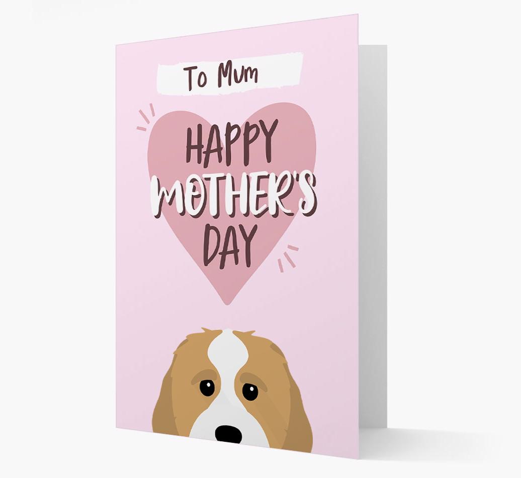 Personalised with her Cavachon's cheeky icon and available in five stunning colours, this cheerful card will make her Mother's Day truly pawsome.