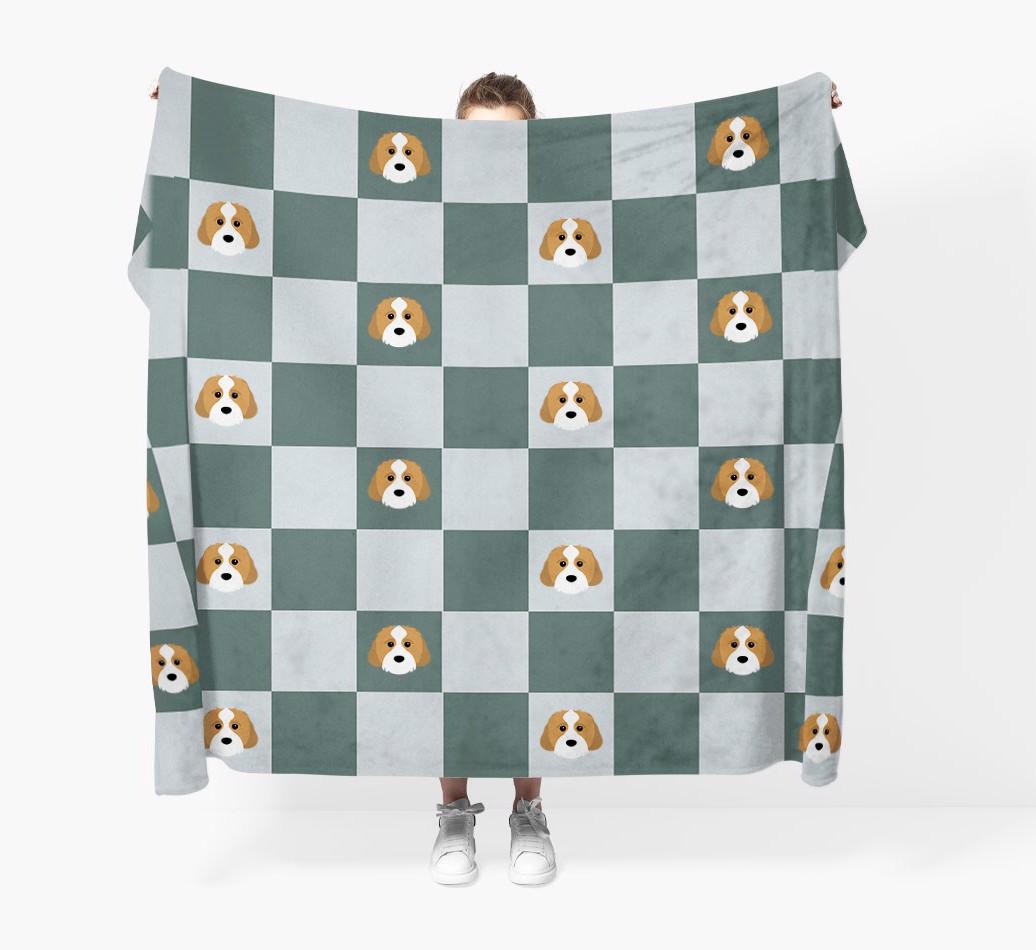 'Checkerboard' - Personalised Cavachon Throw Blanket