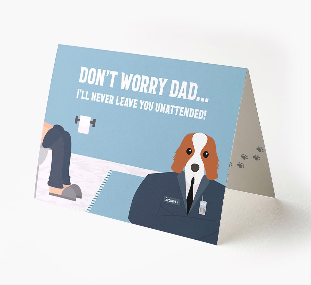 Pawfect for father's day and for Cavalier King Charles Spaniel dads, this card is the ultimate way to let your dad know that his personal security guard (Cavalier King Charles Spaniel) will never leave him unattended!