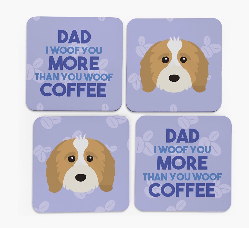 'Dad I Woof You More Than You Woof Coffee' - Personalised Cavapoo Coasters