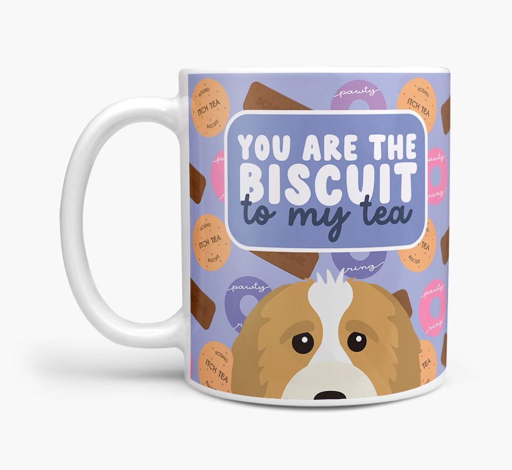Featuring a cute biscuit motif paired with your Cavapoo's adorable face, this mug is bound to be a firm favourite in every household.