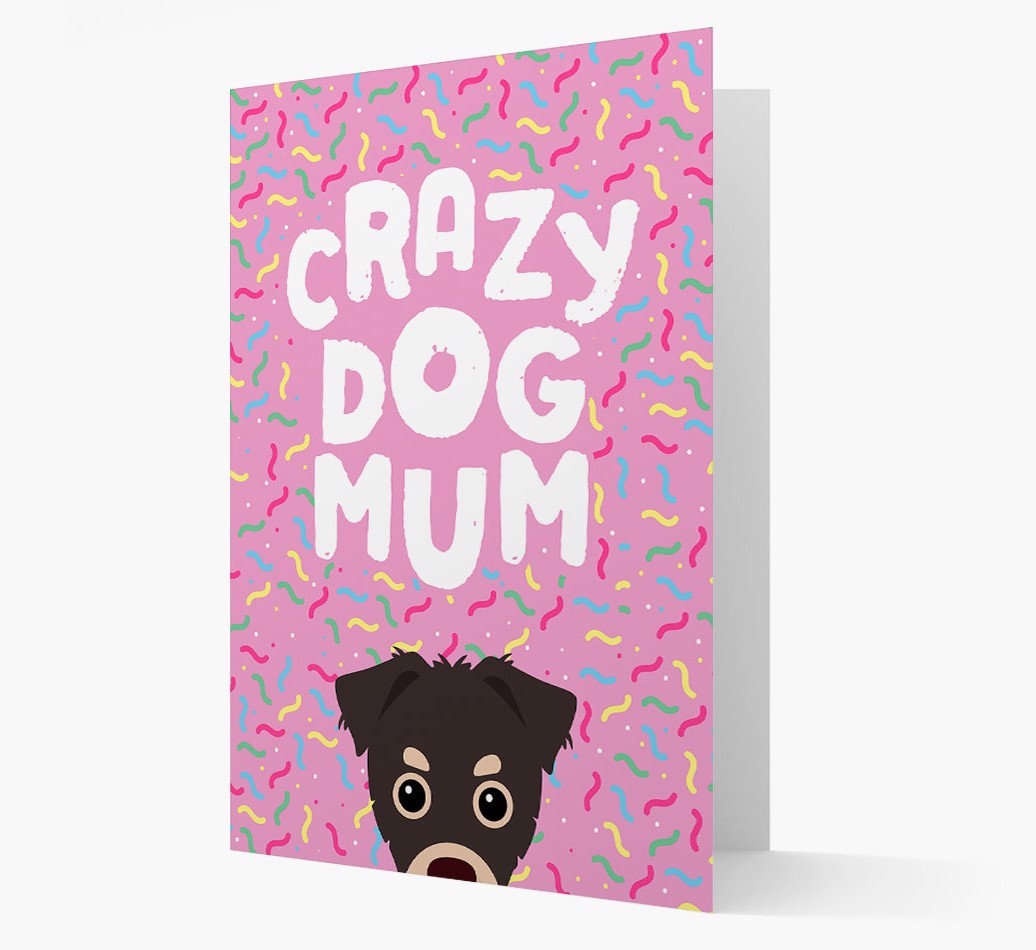 Featuring a colourful confetti background, this joyful card is guaranteed to brighten every Crazy Dog Mum's day.