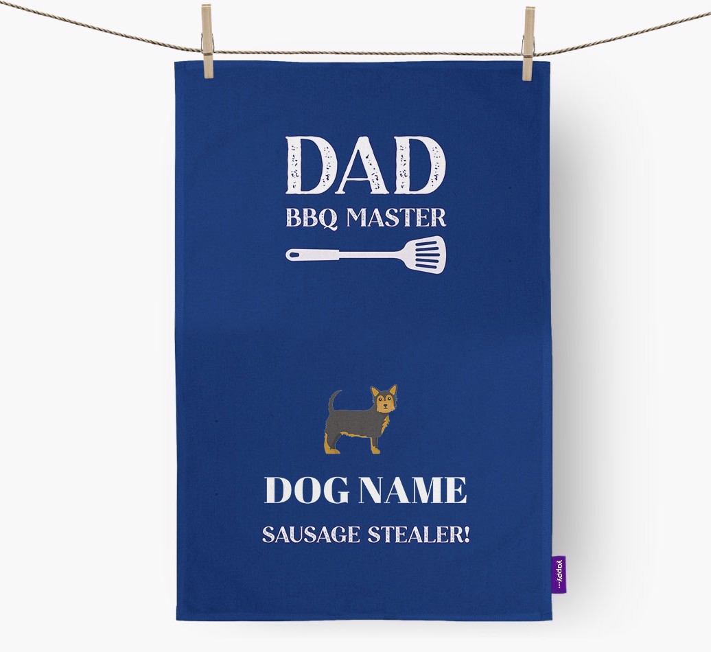 This personalised tea towel is the best way to hand over the title of 'BBQ Master' to Chorkie's dad.