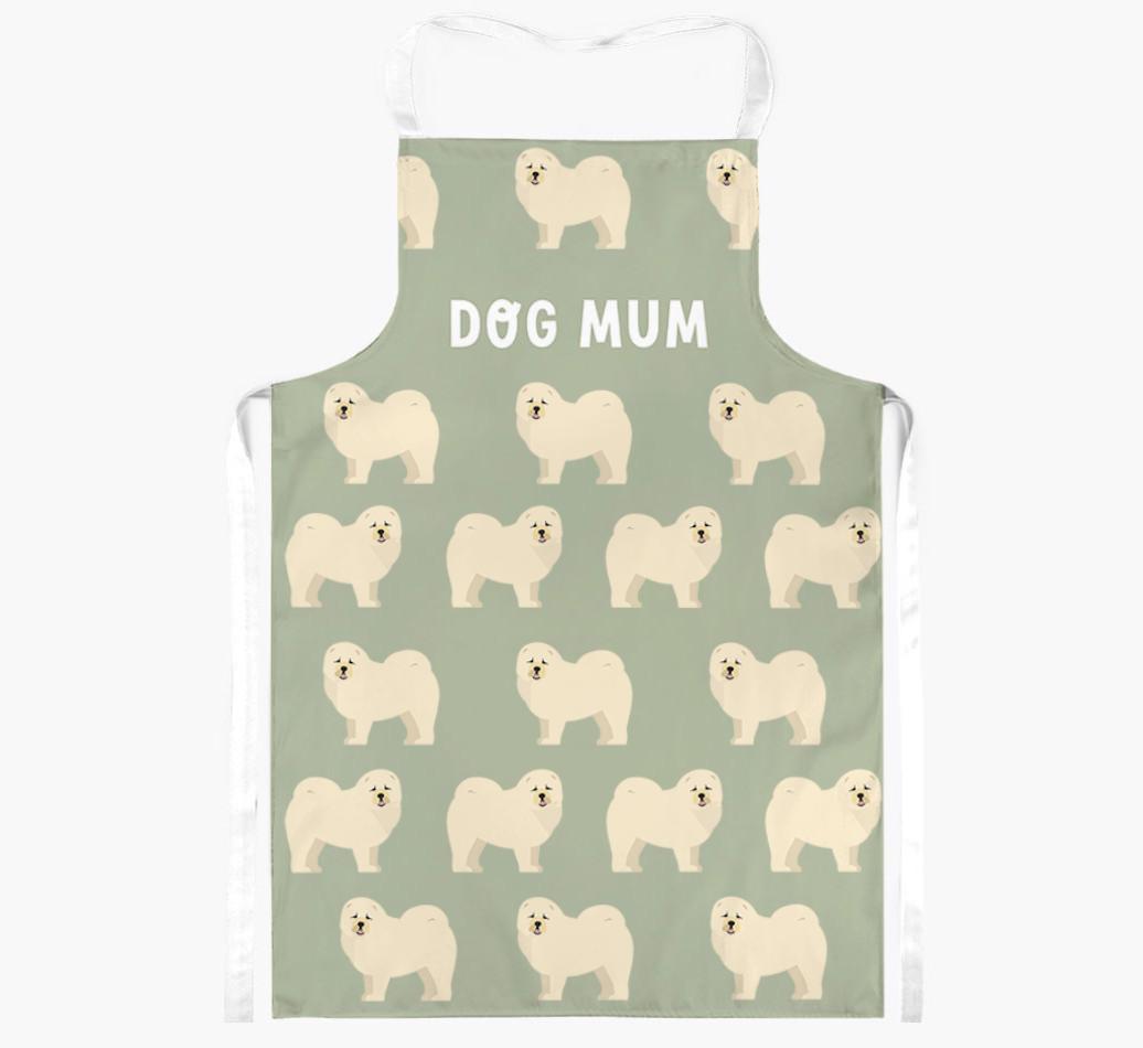 Available in five stylish colours, this apron is made extra special as it's personalised with a pattern of Chow Chow icons. Pawfect!