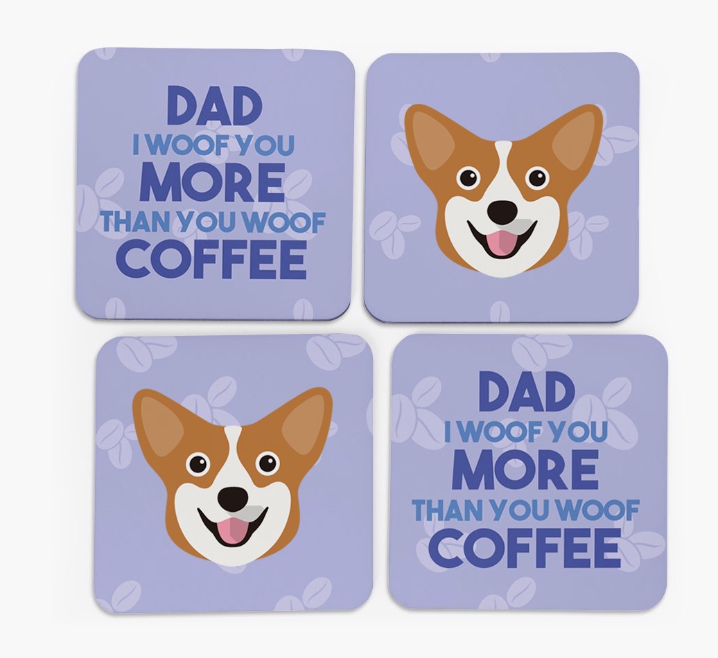 'Dad I Woof You More Than You Woof Coffee' - Personalised Corgi Coasters
