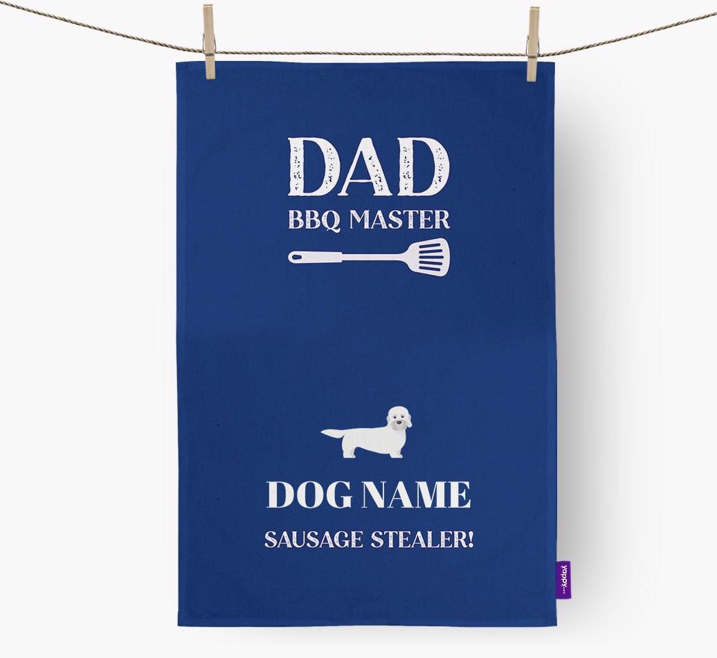 This personalised tea towel is the best way to hand over the title of 'BBQ Master' to Dandie Dinmont Terrier's dad.