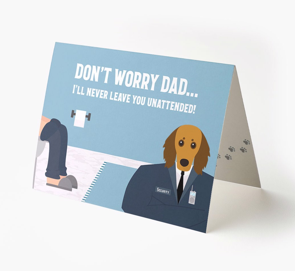 Pawfect for father's day and for Doxiepoo dads, this card is the ultimate way to let your dad know that his personal security guard (Doxiepoo) will never leave him unattended!