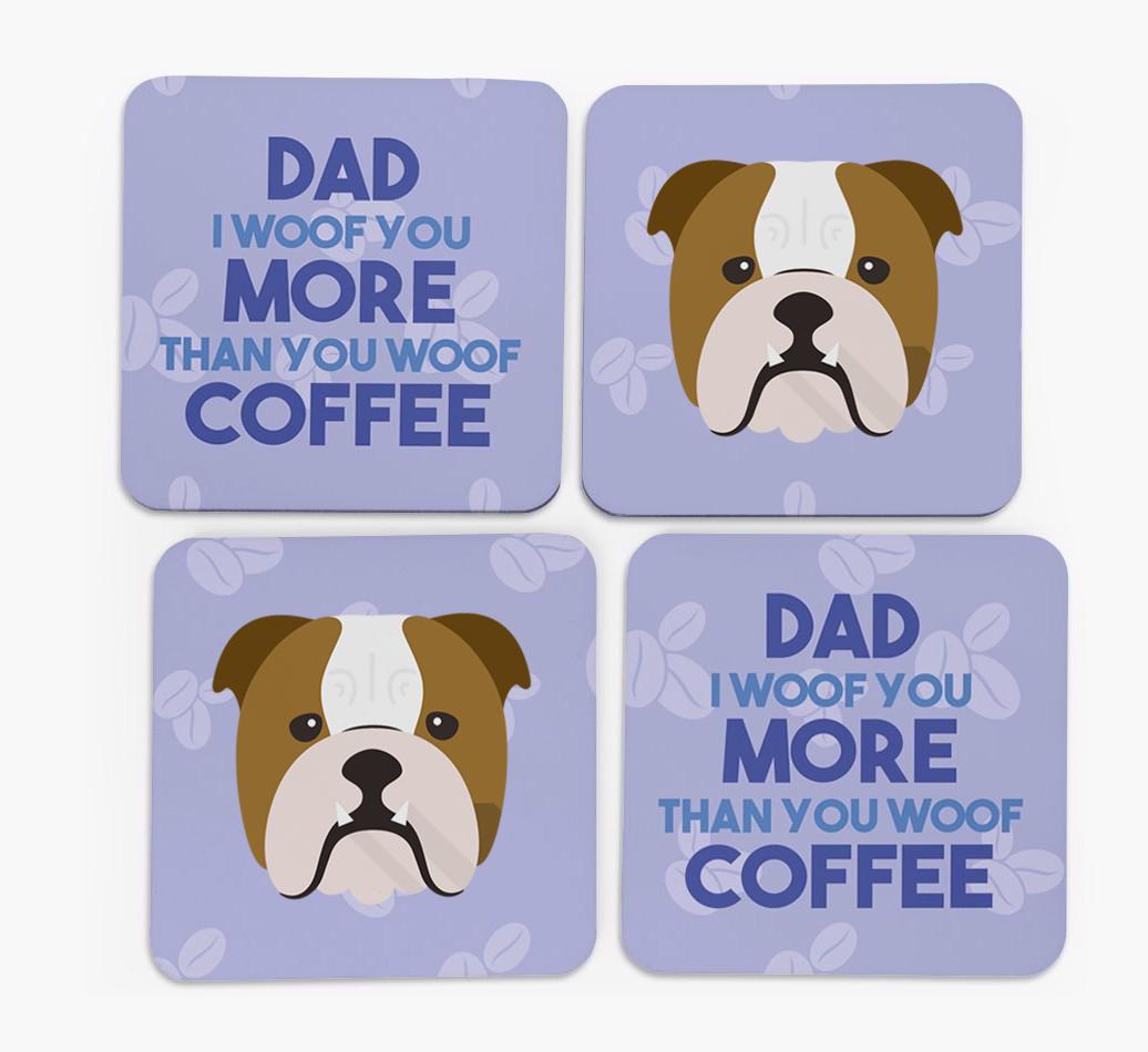 'Dad I Woof You More Than You Woof Coffee' - Personalised English Bulldog Coasters