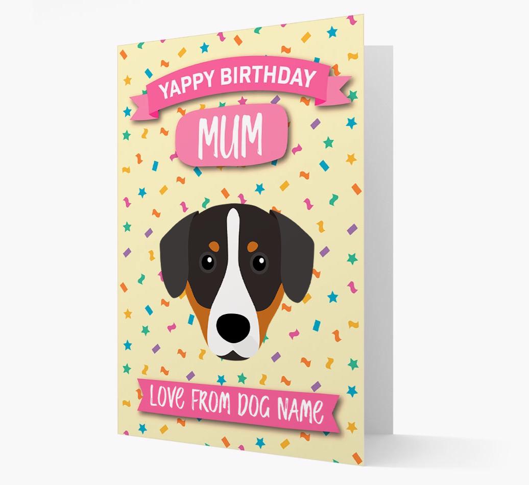 'Yappy Birthday Mum' - Personalised Entlebucher Mountain Dog Birthday Card