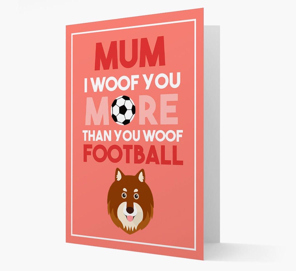 Mum I Woof You More Than You Woof Football: Personalised Finnish Lapphund Card