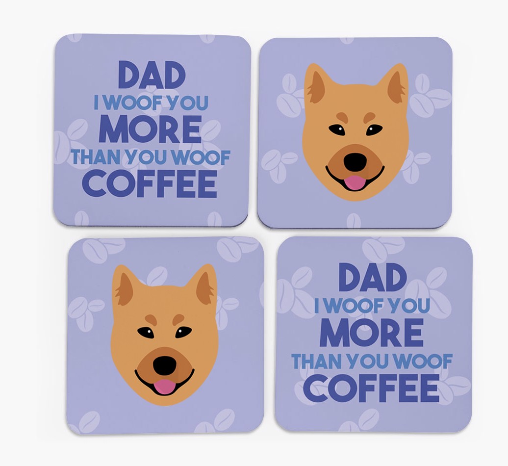'Dad I Woof You More Than You Woof Coffee' - Personalised Finnish Spitz Coasters