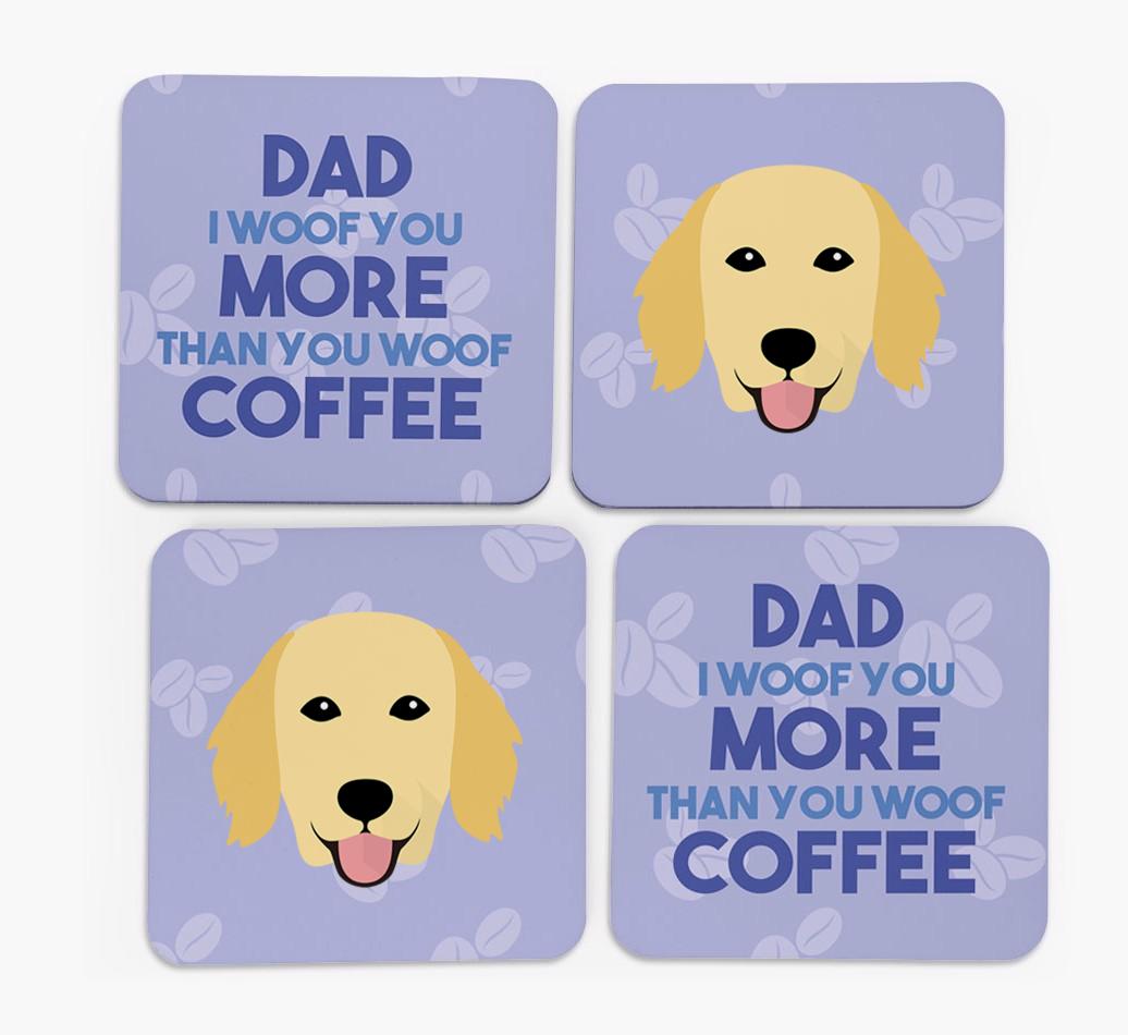 'Dad I Woof You More Than You Woof Coffee' - Personalised Flat-Coated Retriever Coasters