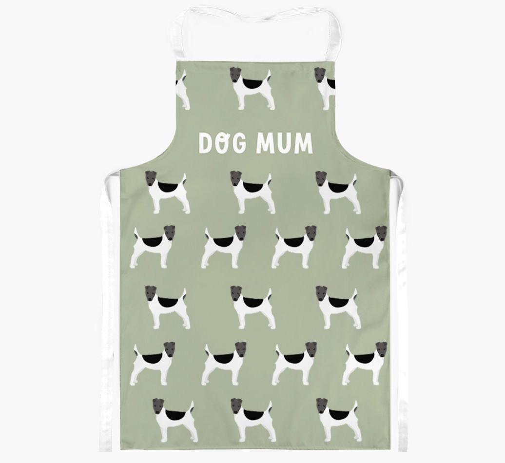 Available in five stylish colours, this apron is made extra special as it's personalised with a pattern of Fox Terrier icons. Pawfect!