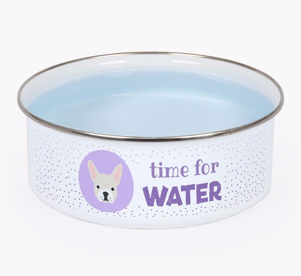 Time For Water: Personalised Enamel French Bulldog Bowl