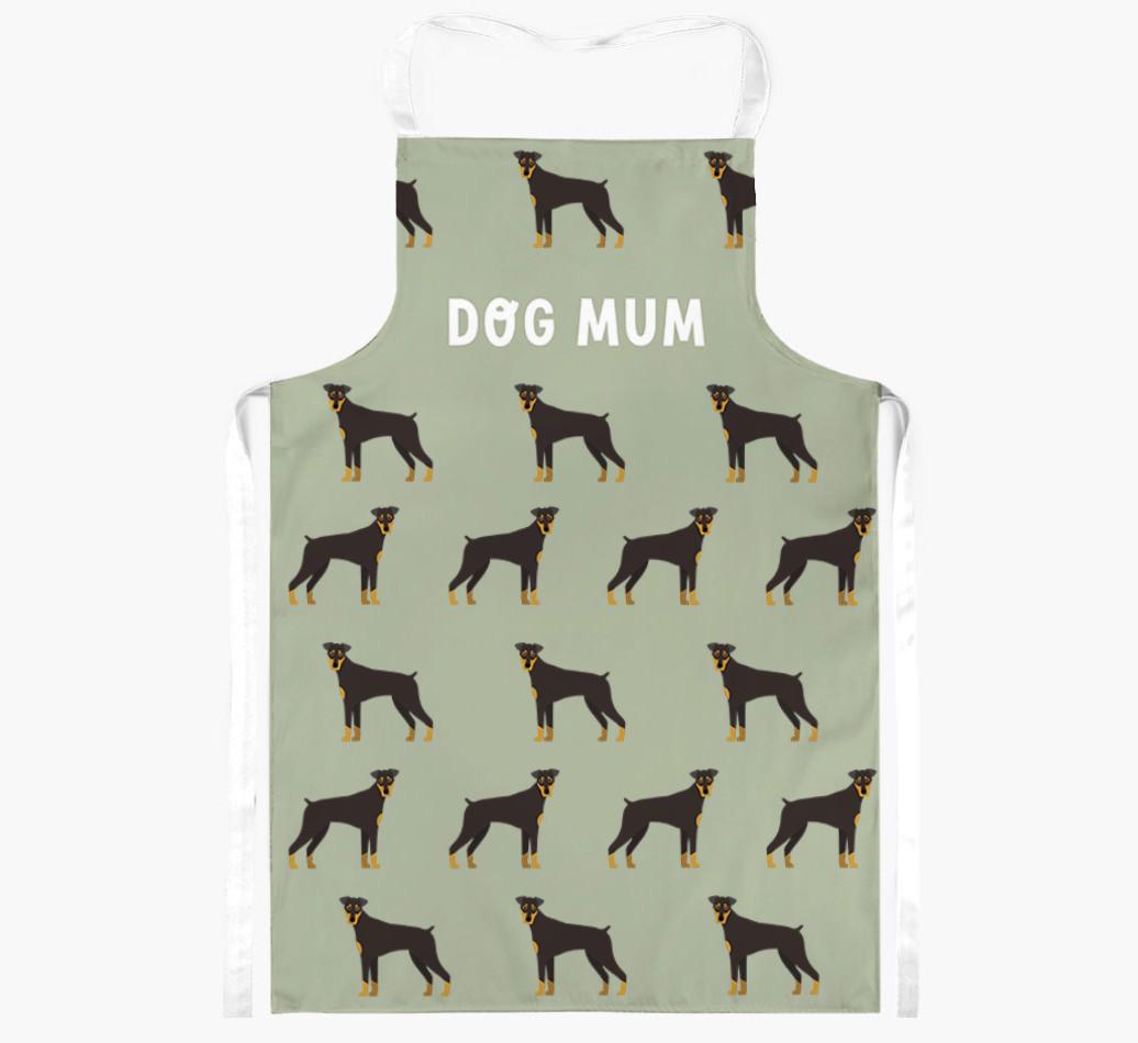 Available in five stylish colours, this apron is made extra special as it's personalised with a pattern of Pinscher icons. Pawfect!