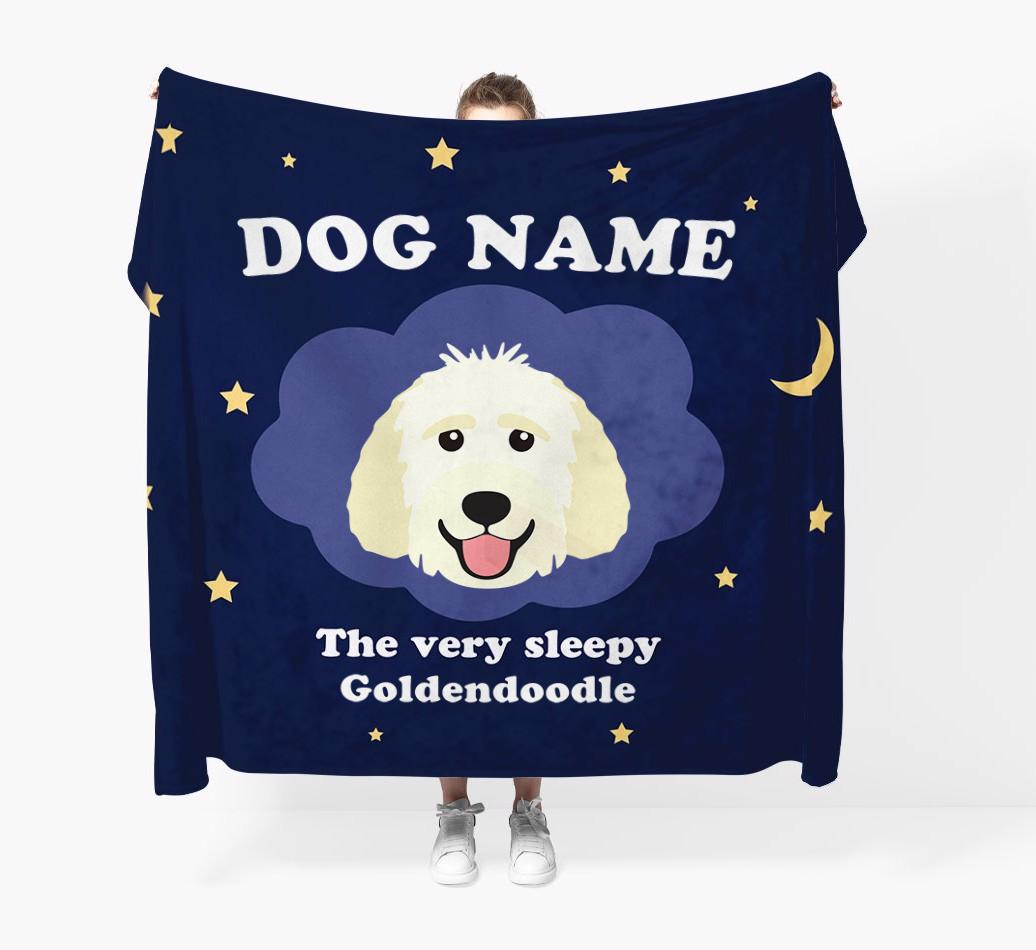 'The Very Sleepy...' - Personalised Goldendoodle Throw Blanket