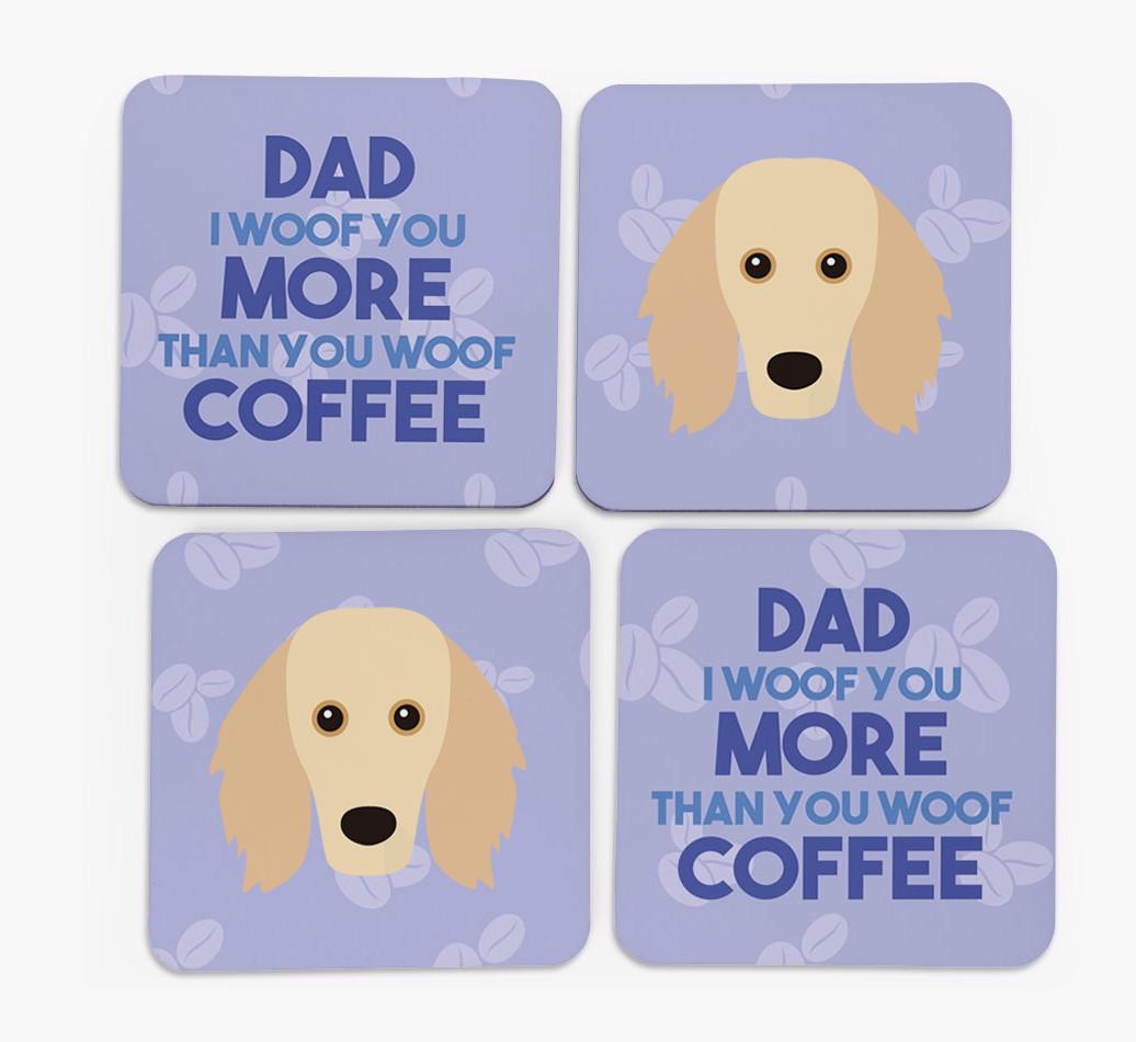 'Dad I Woof You More Than You Woof Coffee' - Personalised Golden Dox Coasters