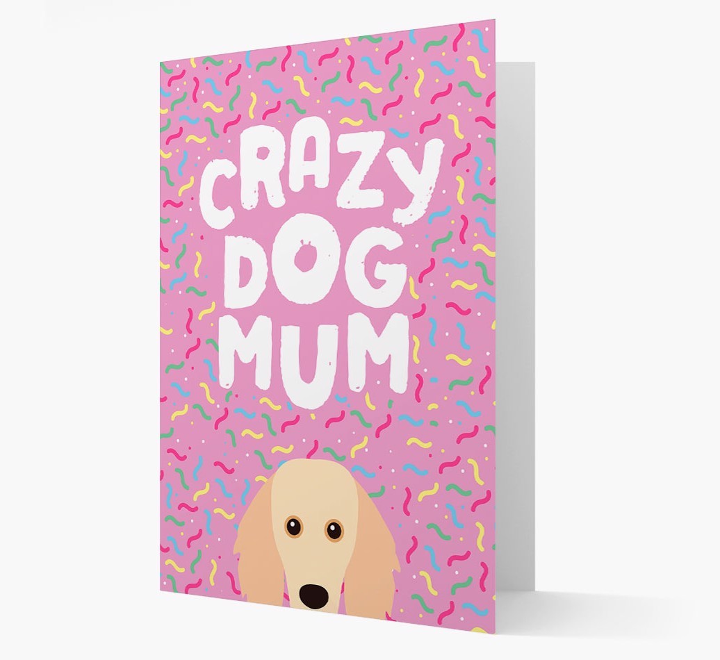 Featuring a colourful confetti background, this joyful card is guaranteed to brighten every Crazy Dog Mum's day.