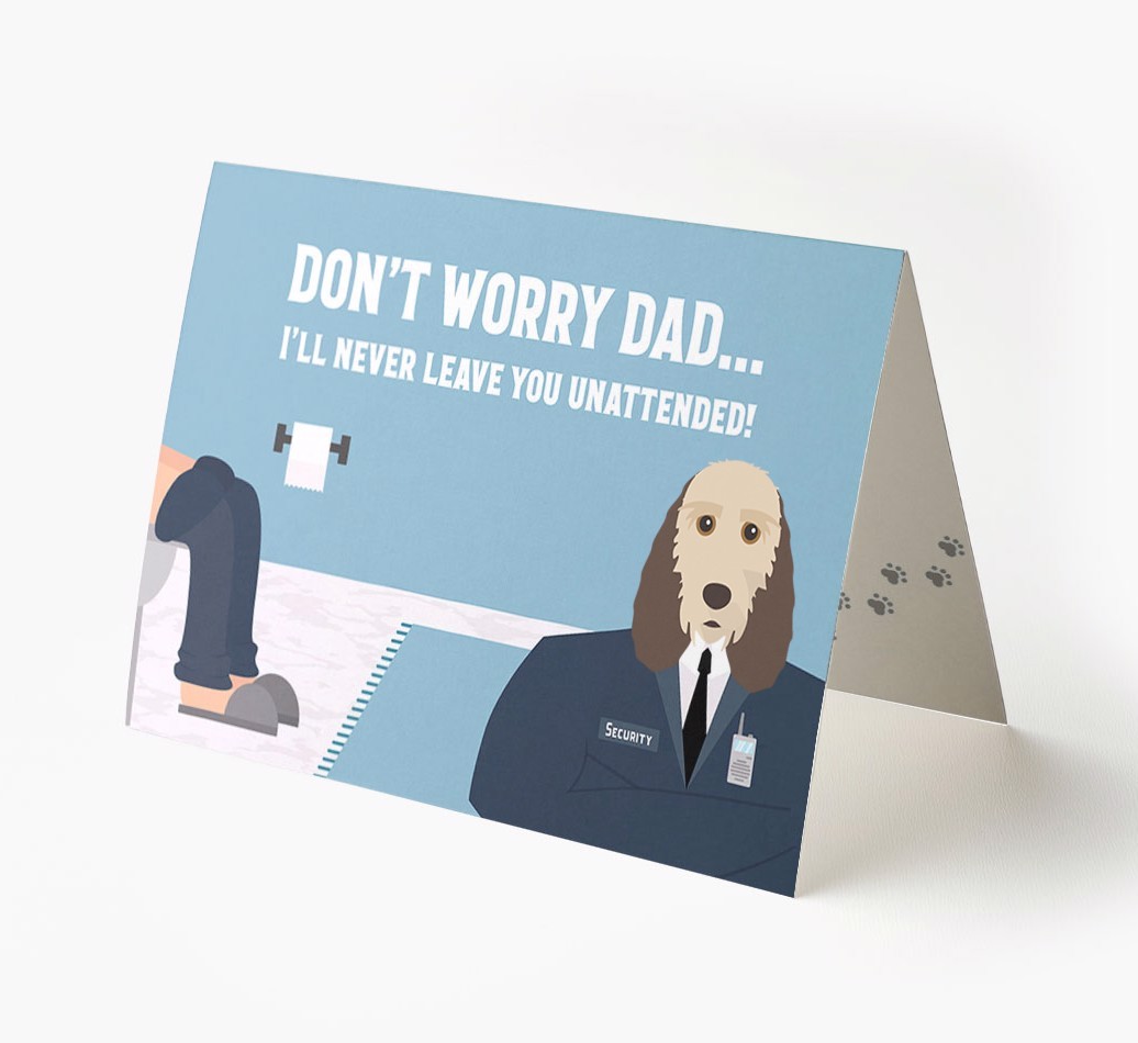 Pawfect for father's day and for Grand Basset Griffon Vendeen dads, this card is the ultimate way to let your dad know that his personal security guard (Grand Basset Griffon Vendeen) will never leave him unattended!