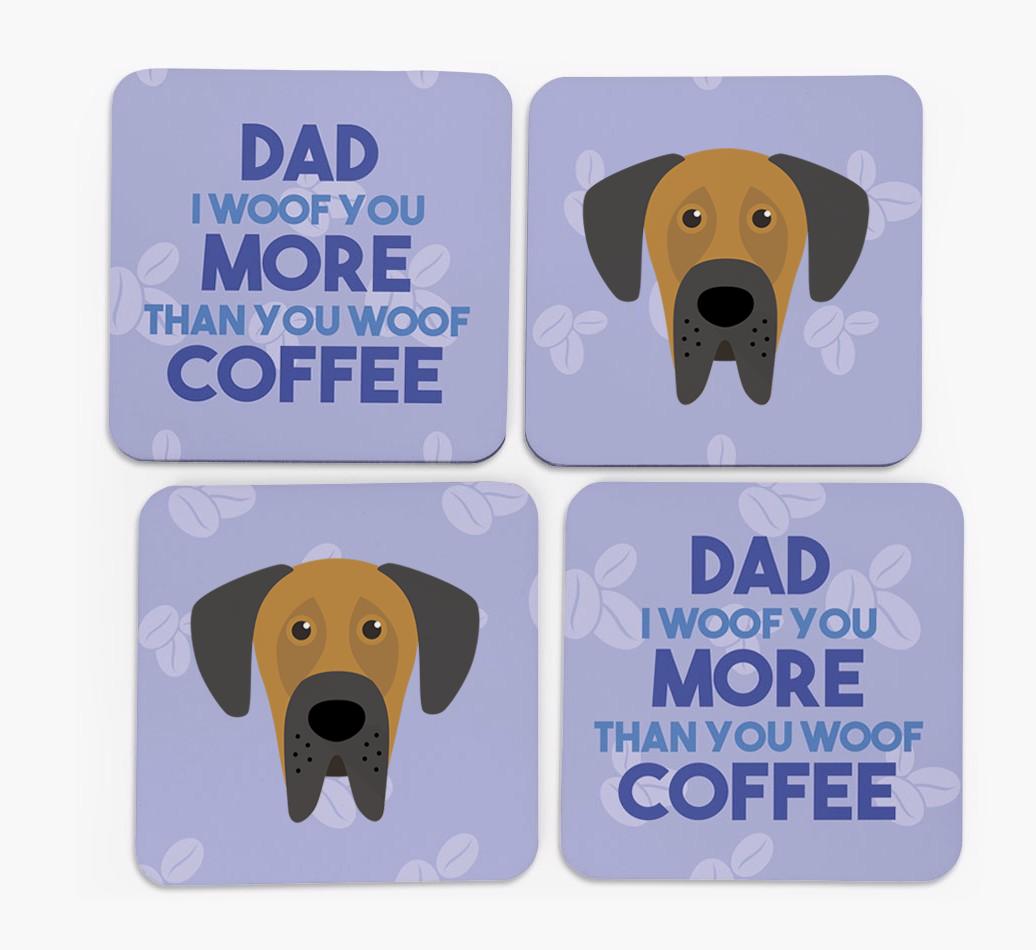 'Dad I Woof You More Than You Woof Coffee' - Personalised Great Dane Coasters