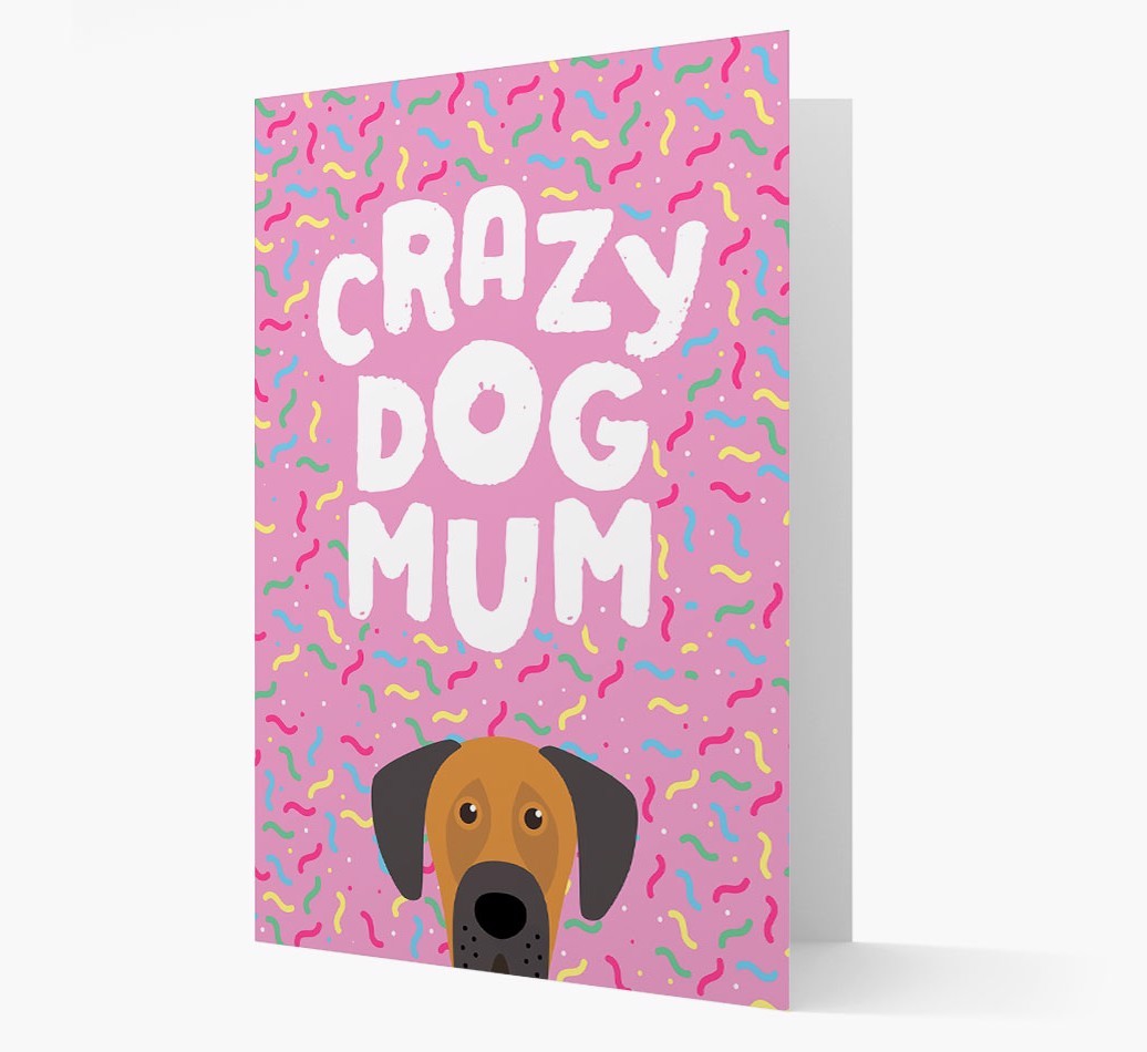 Featuring a colourful confetti background, this joyful card is guaranteed to brighten every Crazy Dog Mum's day.