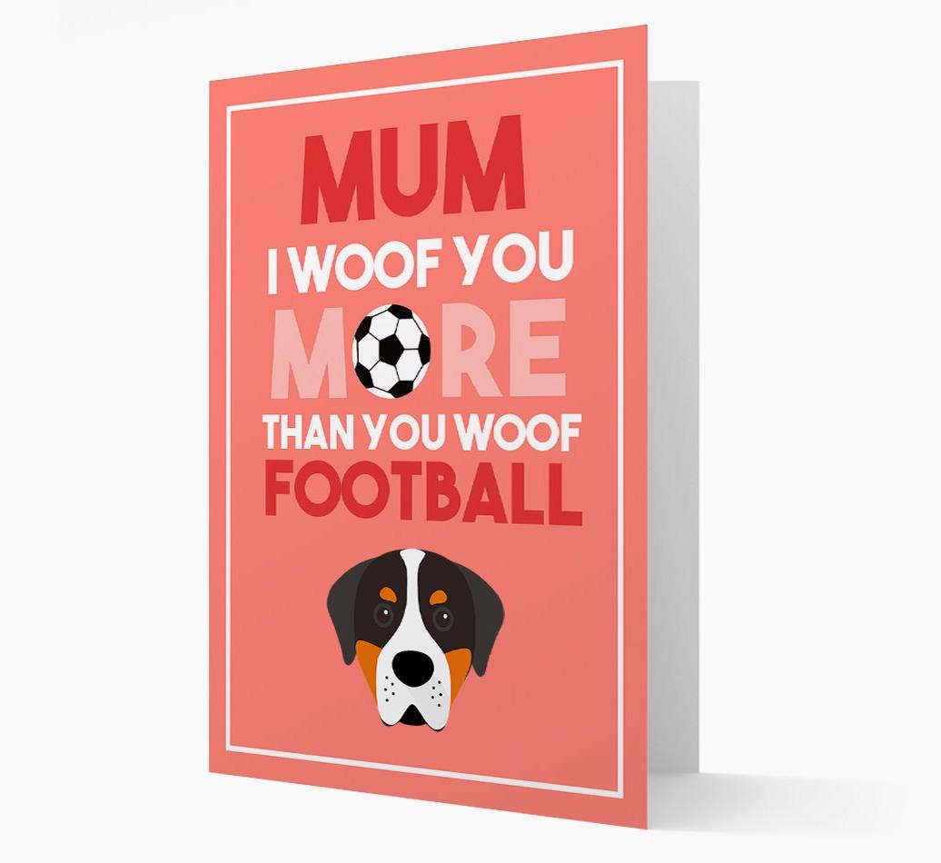 Mum I Woof You More Than You Woof Football: Personalised Greater Swiss Mountain Dog Card