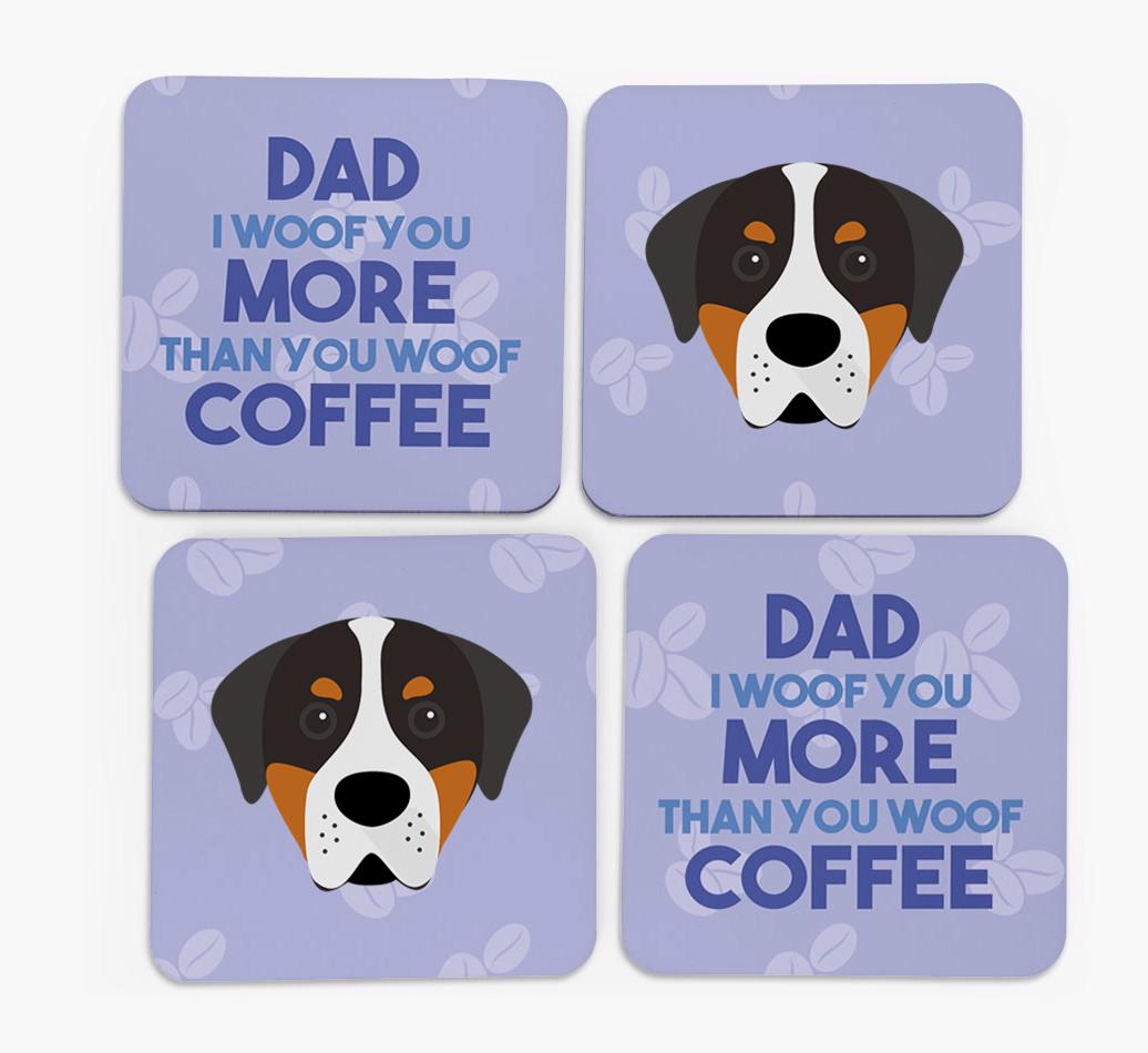 'Dad I Woof You More Than You Woof Coffee' - Personalised Greater Swiss Mountain Dog Coasters