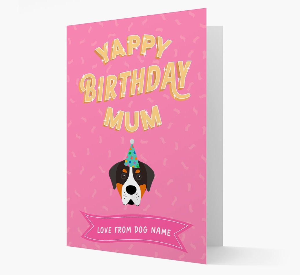 This customisable Swissy card is a woofly way for Greater Swiss Mountain Dog to wish their mum the yappiest of birthdays!