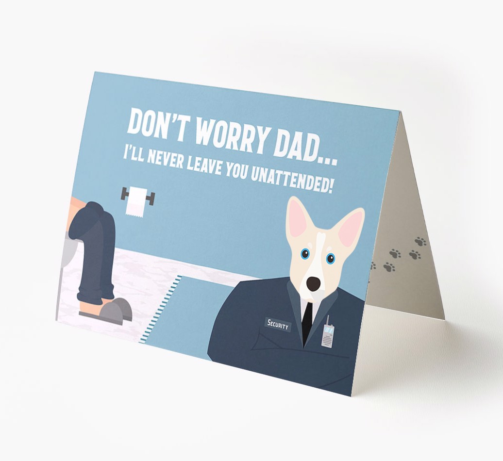 Pawfect for father's day and for Horgi dads, this card is the ultimate way to let your dad know that his personal security guard (Horgi) will never leave him unattended!