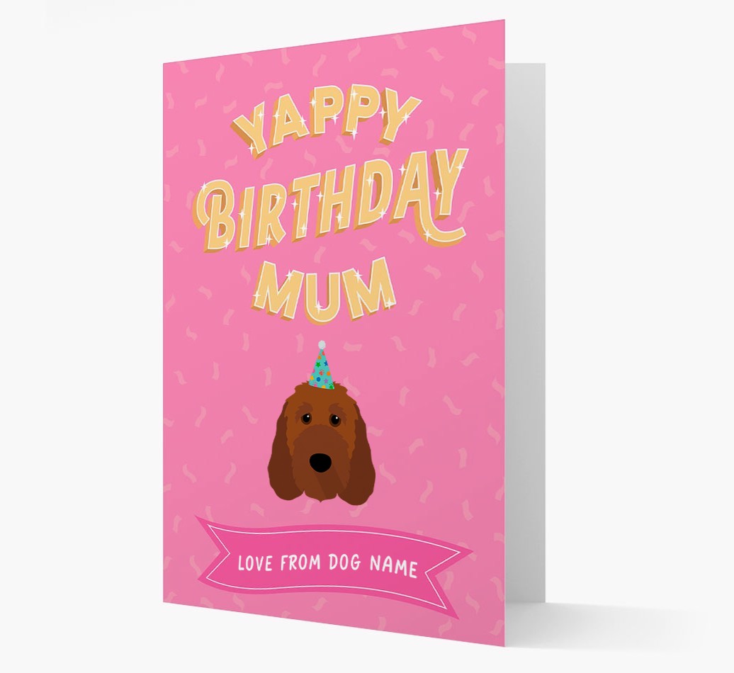 This customisable Irish Doodle card is a woofly way for Irish Doodle to wish their mum the yappiest of birthdays!