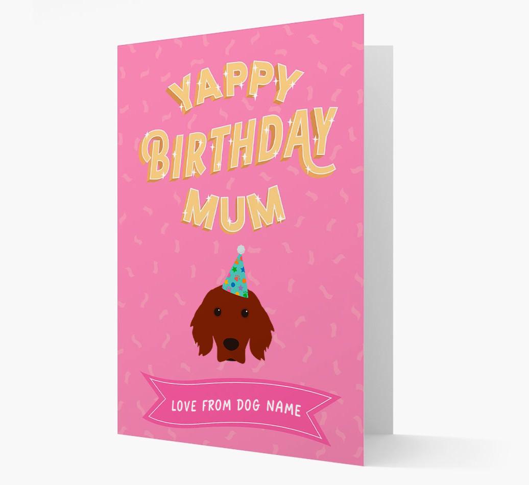 This customisable Red Setter card is a woofly way for Irish Setter to wish their mum the yappiest of birthdays!