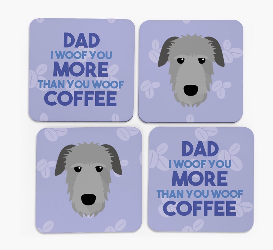 'Dad I Woof You More Than You Woof Coffee' - Personalised Irish Wolfhound Coasters