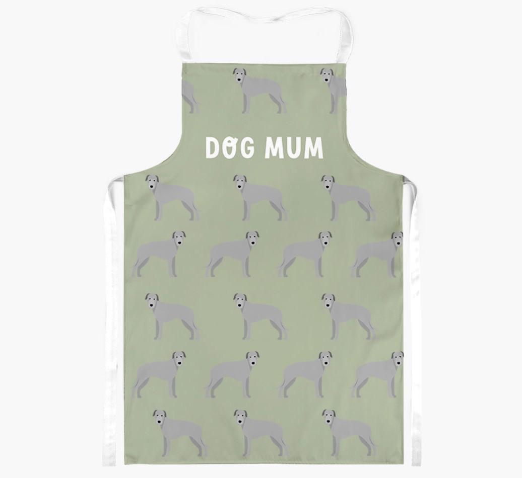 Available in five stylish colours, this apron is made extra special as it's personalised with a pattern of Irish Wolfhound icons. Pawfect!
