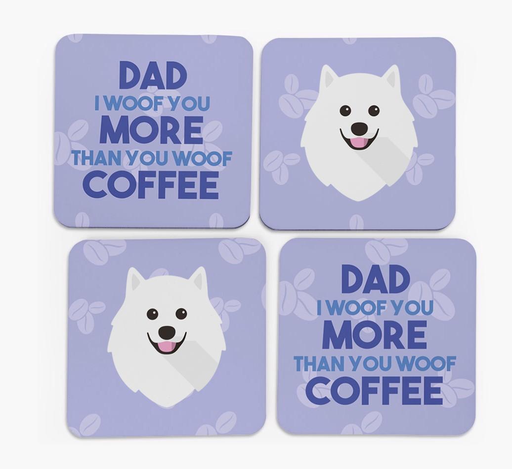 'Dad I Woof You More Than You Woof Coffee' - Personalised Japanese Spitz Coasters
