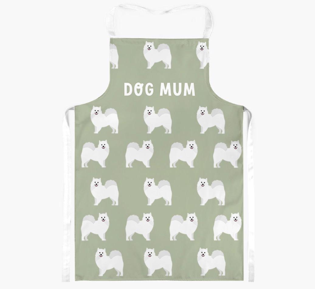 Available in five stylish colours, this apron is made extra special as it's personalised with a pattern of Spitz icons. Pawfect!
