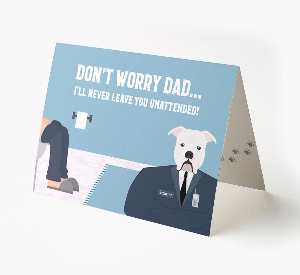 Pawfect for father's day and for Johnson American Bulldog dads, this card is the ultimate way to let your dad know that his personal security guard (Johnson American Bulldog) will never leave him unattended!