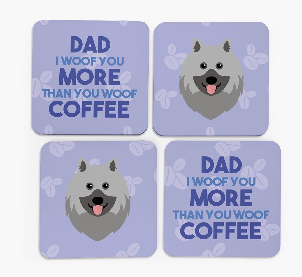 'Dad I Woof You More Than You Woof Coffee' - Personalised Keeshond Coasters