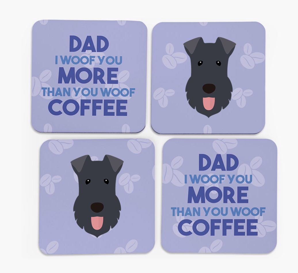 'Dad I Woof You More Than You Woof Coffee' - Personalised Kerry Blue Terrier Coasters
