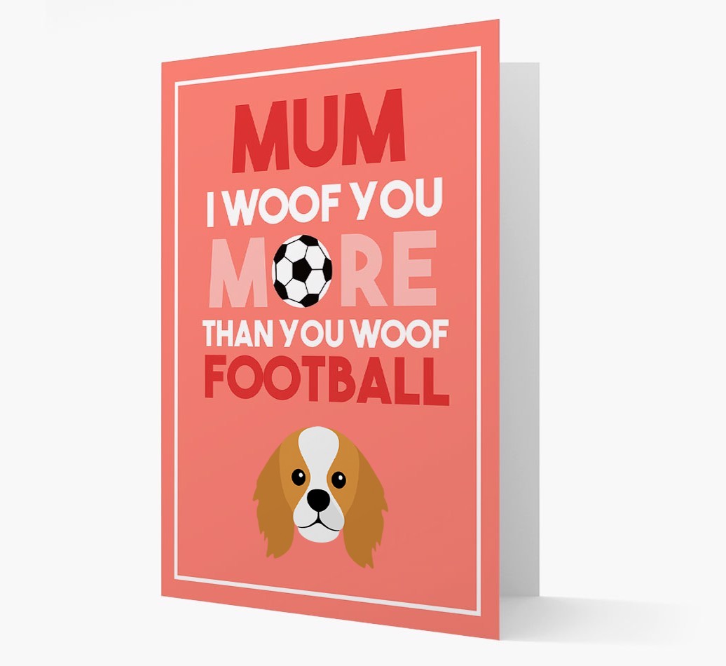 Mum I Woof You More Than You Woof Football: Personalised King Charles Spaniel Card
