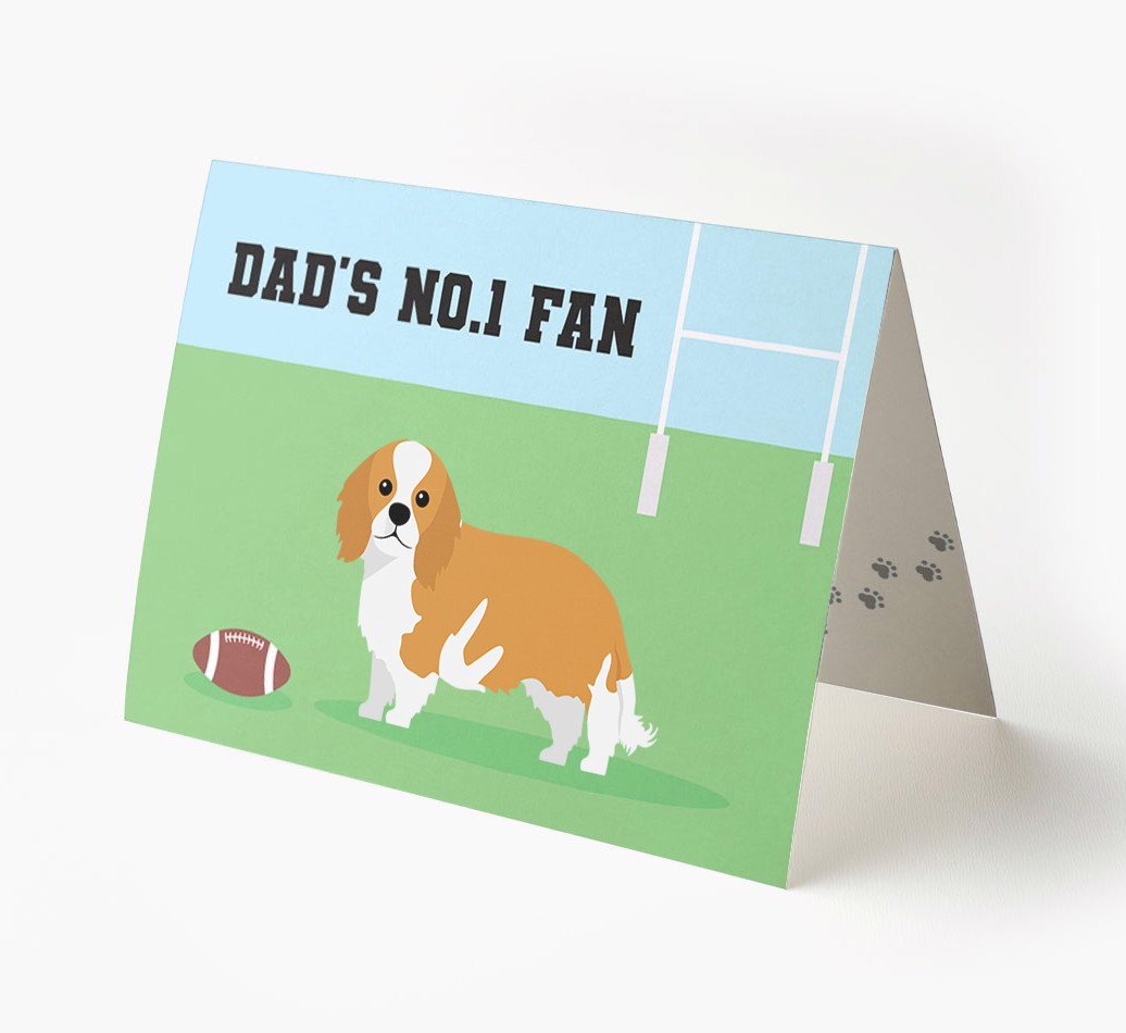 Even if your dad isn't the No.1 player, at least with this card your dad will know that his King Charles Spaniel is his No. 1 fan! Featuring a personalised King Charles Spaniel Yappicon and a supaw cute and exclusive Yappy.com design, this card will stand out on your shelf as much as Your King Charles stands out in the crowd.