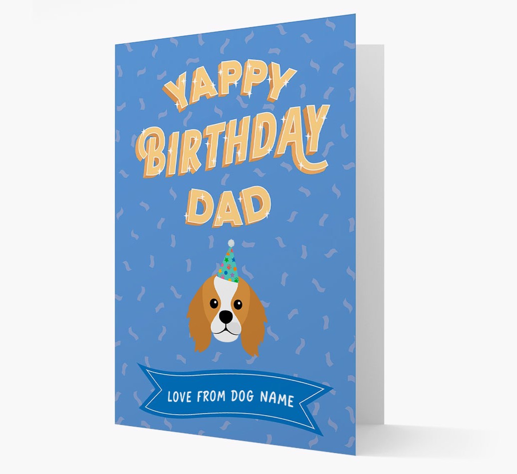 As this cute birthday card is personalised with King Charles Spaniel's name and icon, it's sure to impress the amazing King Charles dad in your life. Choose from four vibrant colours to truly brighten his day!