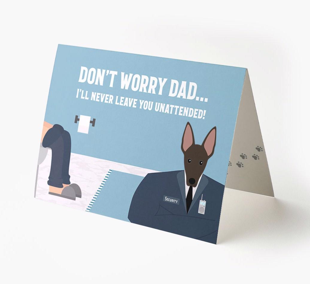 Pawfect for father's day and for Mexican Hairless dads, this card is the ultimate way to let your dad know that his personal security guard (Mexican Hairless) will never leave him unattended!
