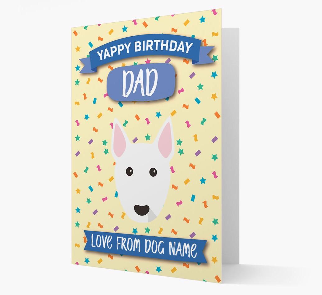 'Yappy Birthday Dad' - Personalised Miniature Bull Terrier Birthday Card
