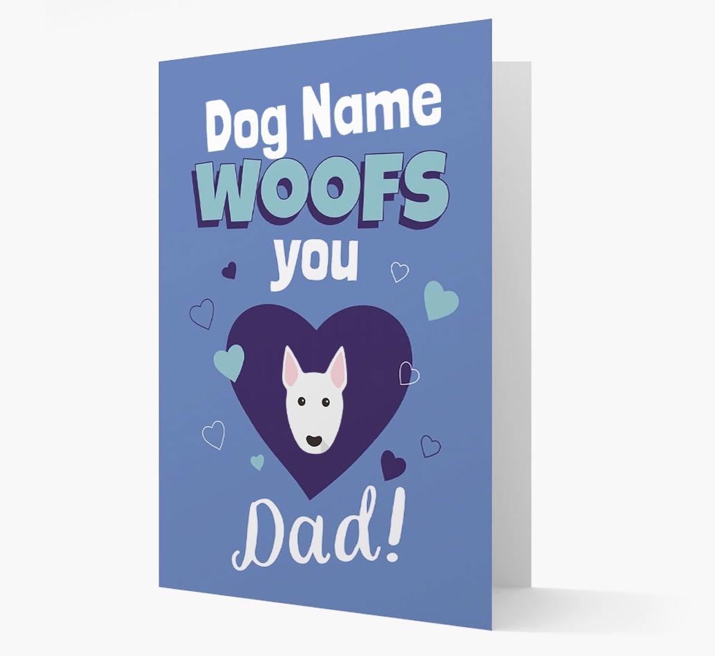 'I Woof You Dad' - Personalised Miniature Bull Terrier Card