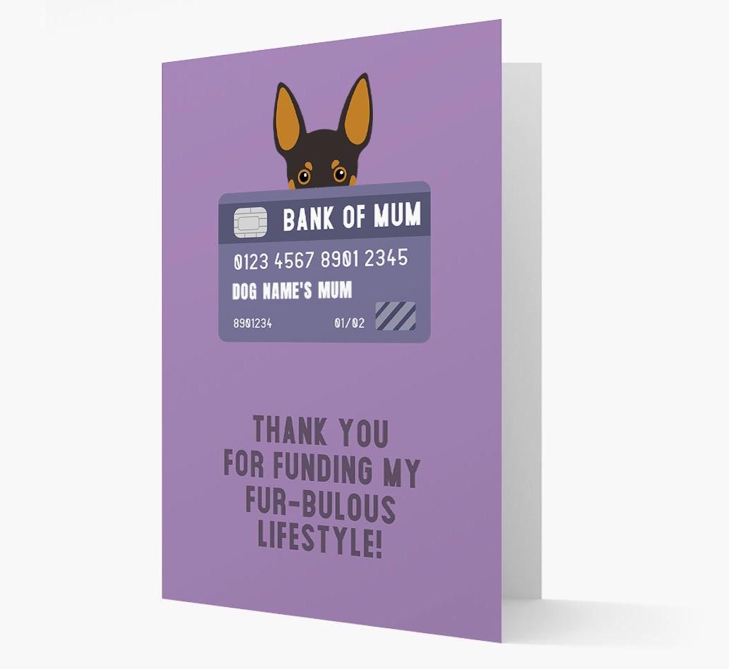 'Bank of Mum' - Personalised Miniature Pinscher Card