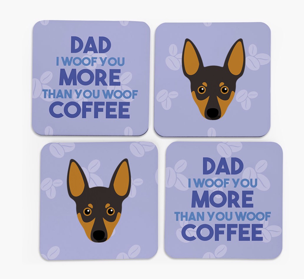 'Dad I Woof You More Than You Woof Coffee' - Personalised Miniature Pinscher Coasters
