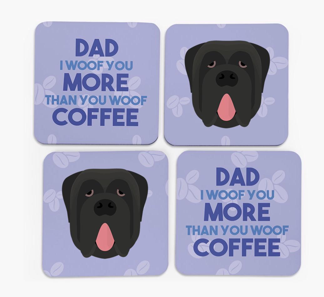 'Dad I Woof You More Than You Woof Coffee' - Personalised Neapolitan Mastiff Coasters