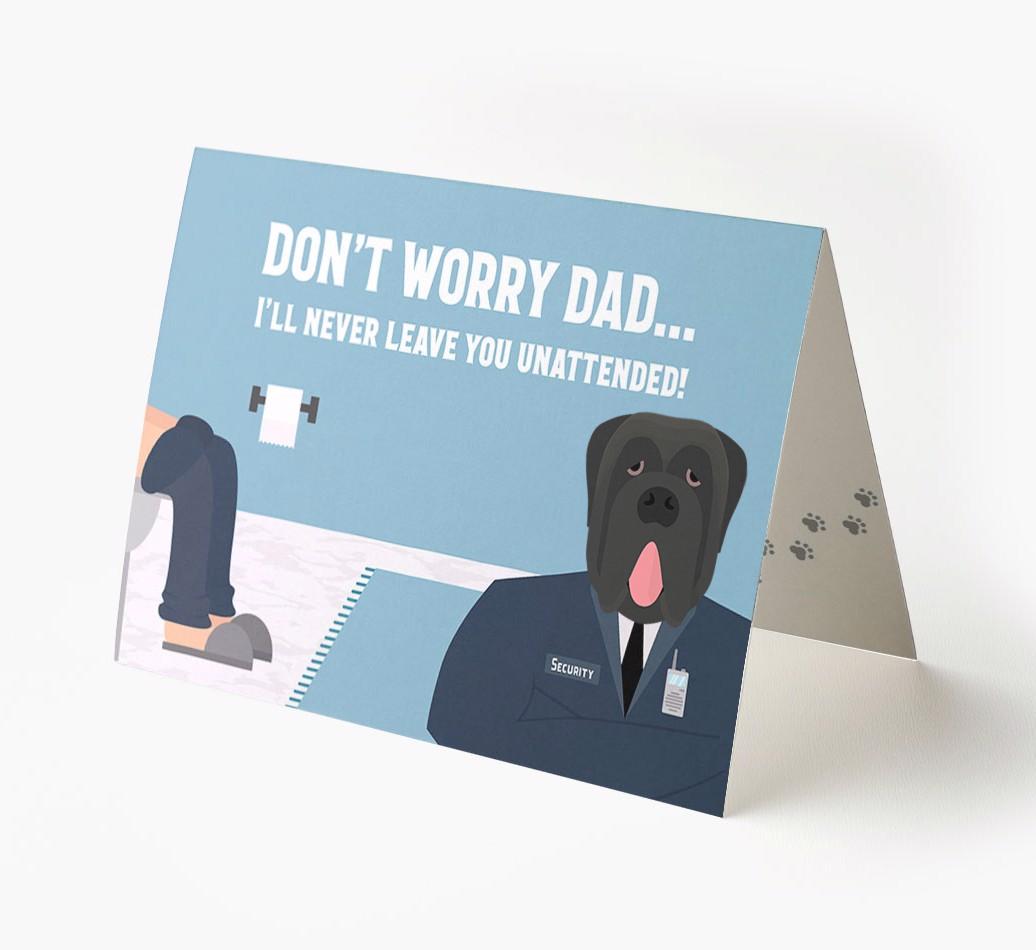 Pawfect for father's day and for Neapolitan Mastiff dads, this card is the ultimate way to let your dad know that his personal security guard (Neapolitan Mastiff) will never leave him unattended!
