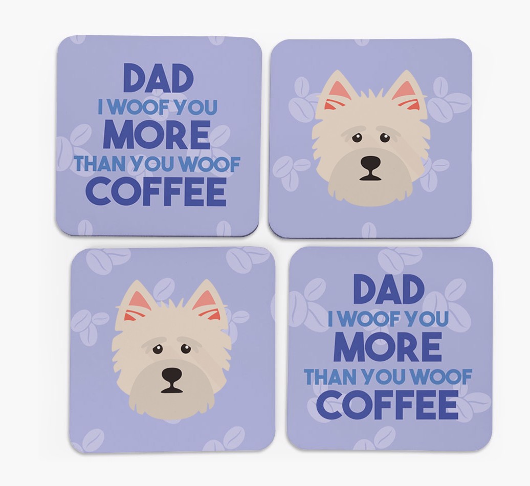 'Dad I Woof You More Than You Woof Coffee' - Personalised Norfolk Terrier Coasters