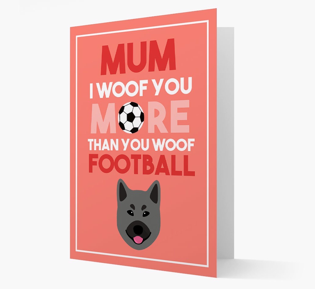 Mum I Woof You More Than You Woof Football: Personalised Norwegian Elkhound Card
